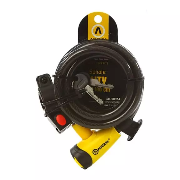 Il Cavo spirale antifurto Auvray City 150x8cm è realizzato con un cavo intrecciato di 10 mm di diametro.